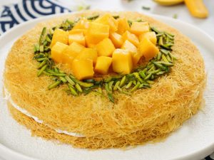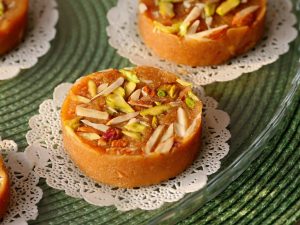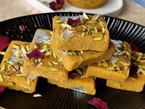 Kaju sa decorate karein aur pieces mein cut ker lein.