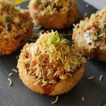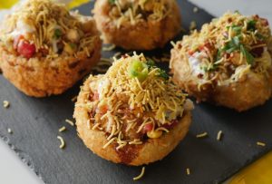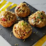 Onion cup mein aloo tikki pieces,chanay ka mixture,dahi,khatti meethi chutney,nimco sev,lal mirch crushed aur hara dhania dal ker serve karein.