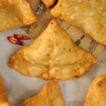 -Fill the cone with prepared potato filling (1-2 tbs),apply water on the edges & bring the edges together and seal edges properly with water (makes 18).