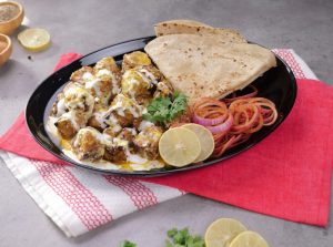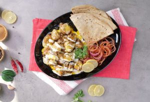 -Melted makhan ko drizzle ker lein,chapati & pyaz rings ka saath serve karein!