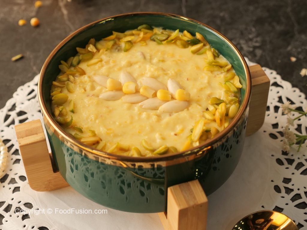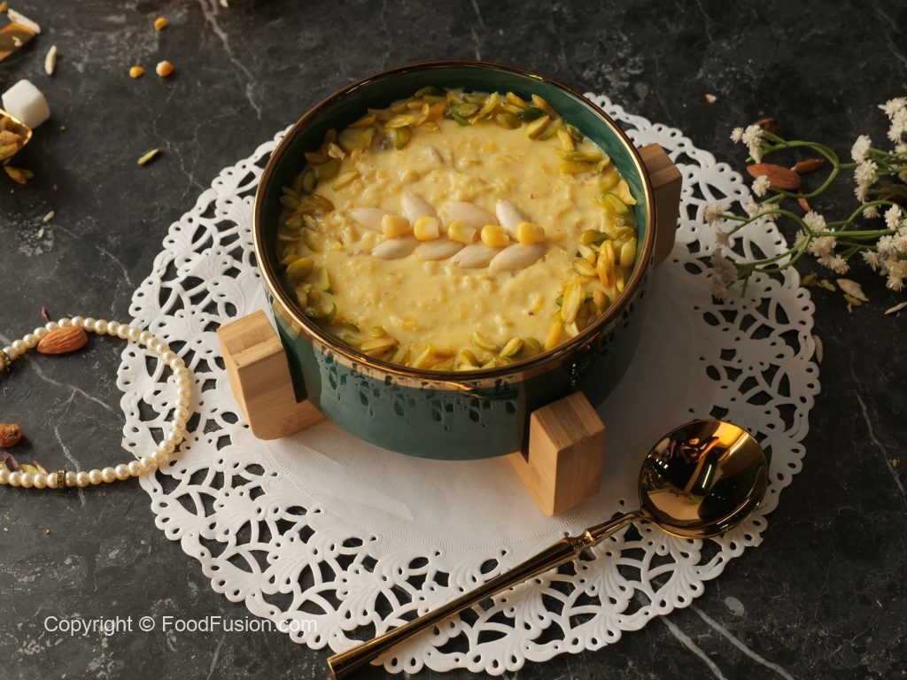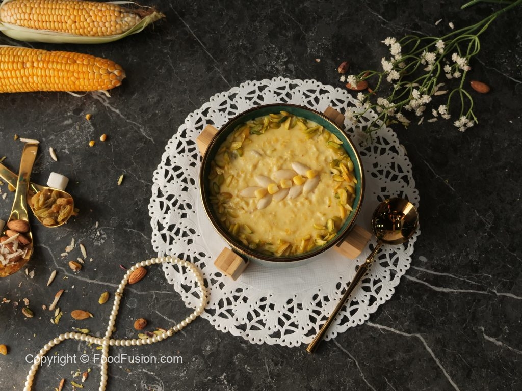 Badam,corn kernels aur pista sa garnish ker lein & thanda serve karein!