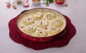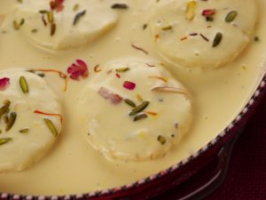 -Place them on serving dish,pour prepared malai milk & garnish with pistachios,almonds & serve!