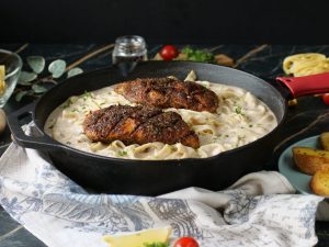 -Cajun chicken rakh dein & fresh parsley sa garnish ker ka serve karein!