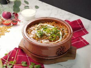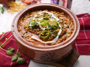 -Add prepared chana daal qeema & garnish with fresh coriander,ginger,green chilli,cream & serve!