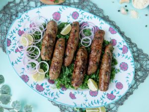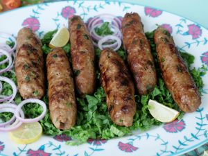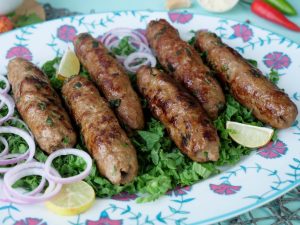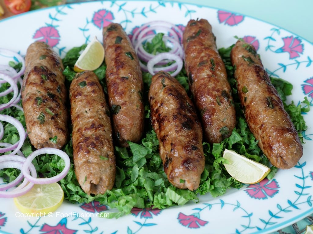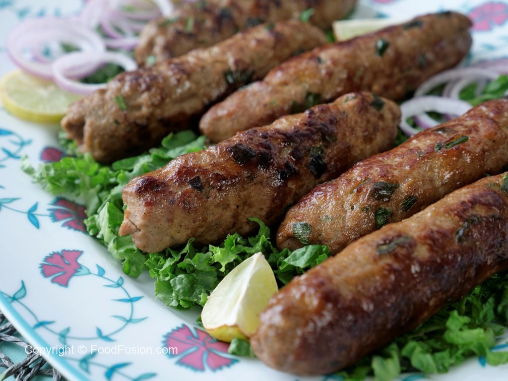 In a frying pan,add cooking oil,remove kababs from skewers & fry on medium flame from all sides until golden brown (makes 9-10).