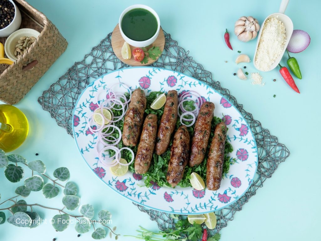In a chopper,add beef mince,chicken mince,salt,red chilli powder,coriander powder,black pepper powder,cumin powder,cardamom powder,garam masala powder,gram flour,white pepper powder,fried onion,raw papaya paste,ginger garlic paste,green chilli paste,bread slice & chop until well combined.
