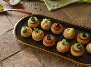 Take saltish biscuits,apply chicken mixture on it then place another biscuit to make a sandwich.