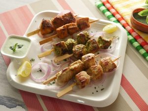 In bowl,add yogurt,chaat masala,red chili powder,salt,ginger garlic paste,turmeric powder,paprika powder,black pepper powder,lemon juice,fresh coriander,cooking oil and mix well.