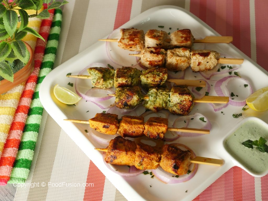 In bowl,add yogurt,cream,ginger garlic paste,green chili,black pepper powder,white pepper powder, salt,cumin powder,lemon juice,fresh coriander,cooking oil and mix well.