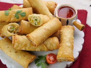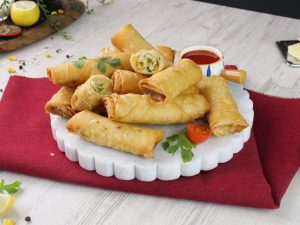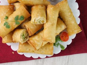 -Take a roll sheet (8x8 inch),add prepared filling in the center,fold both sides,apply flour slurry & roll up (makes 21).