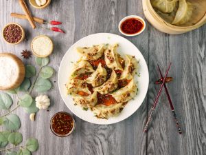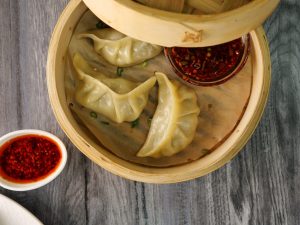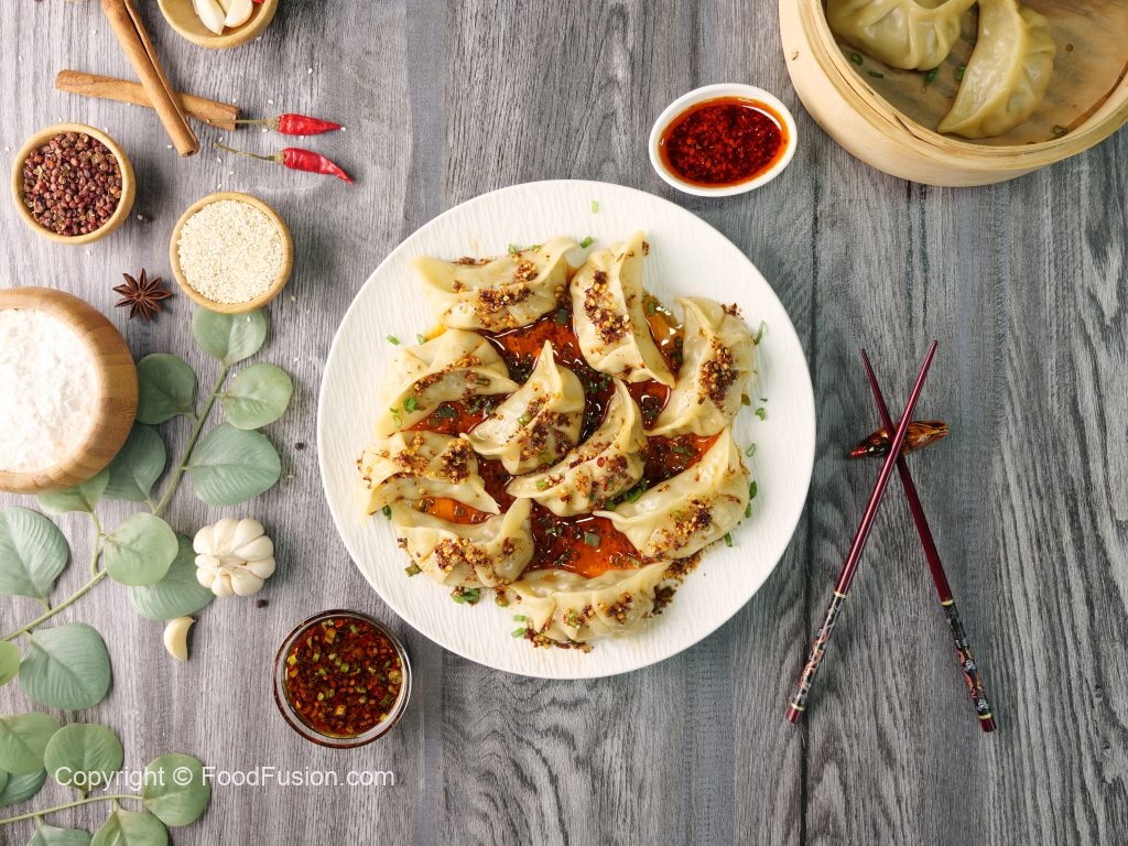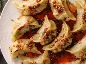 Chicken Dumplings with Chilli Oil & Dumpling Sauce