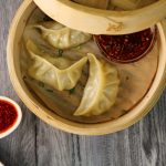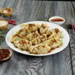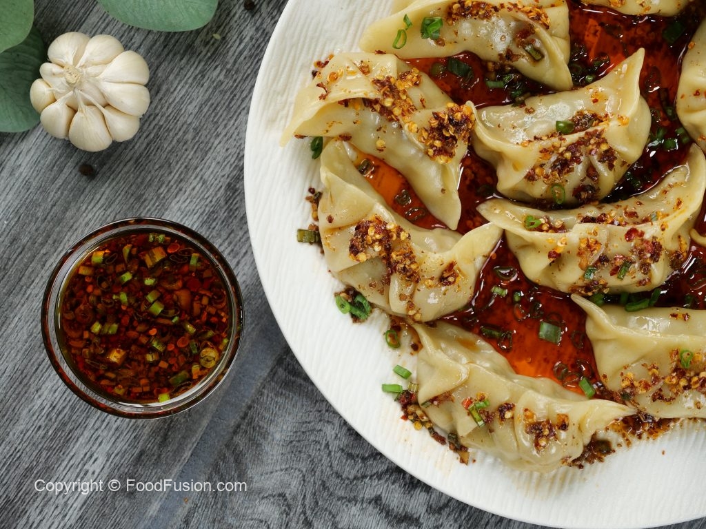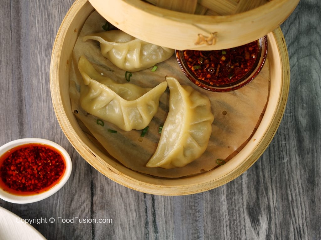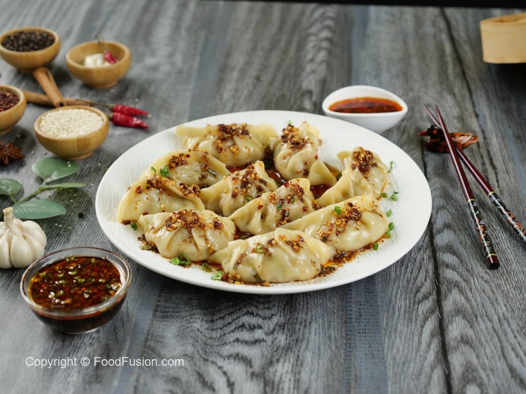 -On dumplings,add prepared chilli oil,dipping sauce,green onion leaves & serve!