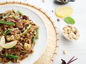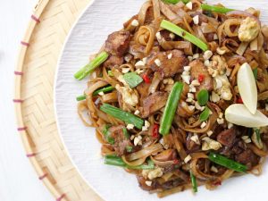 -Move the noodles on one side of wok,on the empty side of wok,add cooking oil,whisked egg & cook on medium flame until done.