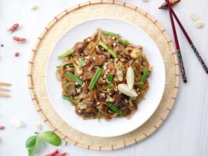 -Rice noodles aur tayyar sauce dal ker ache tarhan mix ker lein.