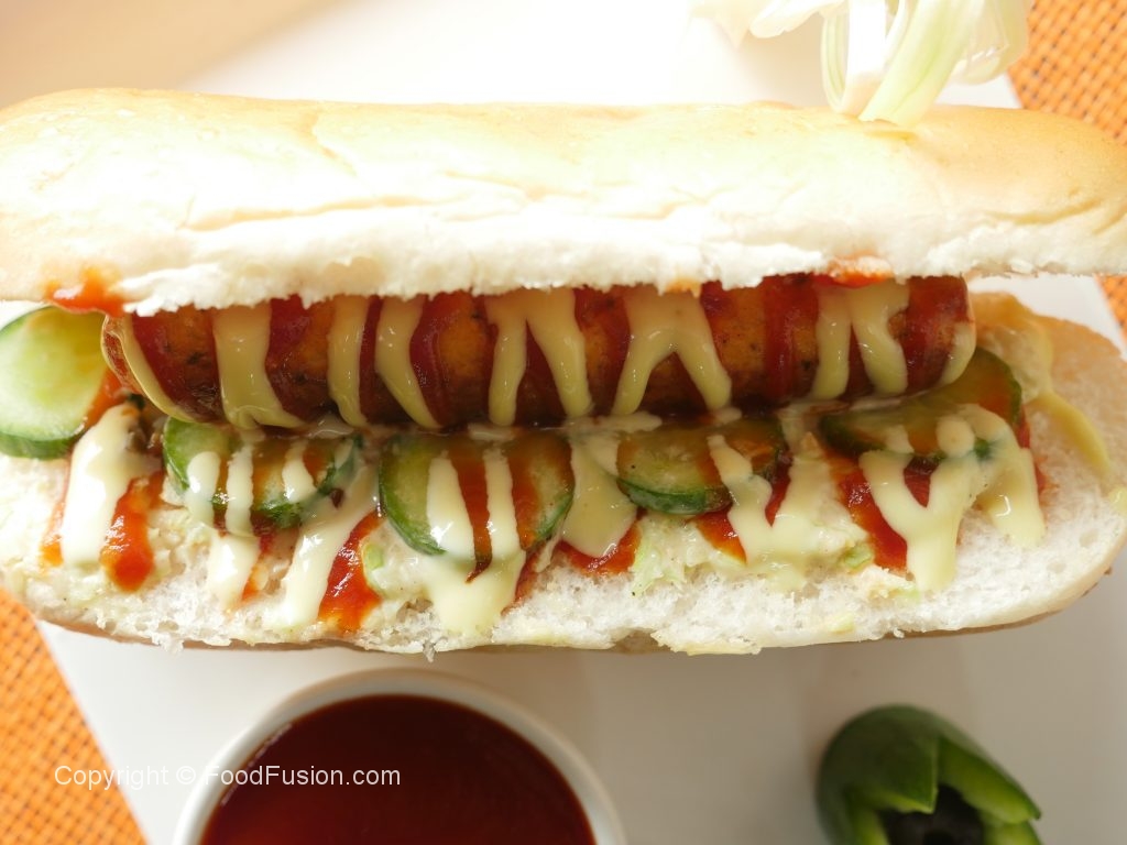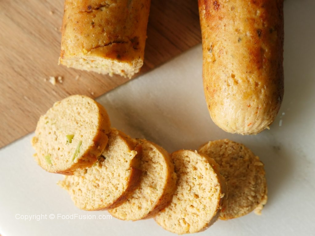 Boiling water mein tayyar sausages dal ker 8-10 minutes kliya boil ker lein aur foran ice chilled pani mein dal ker 5 minutes kliya chor dein phir cling film ko nikal lein.