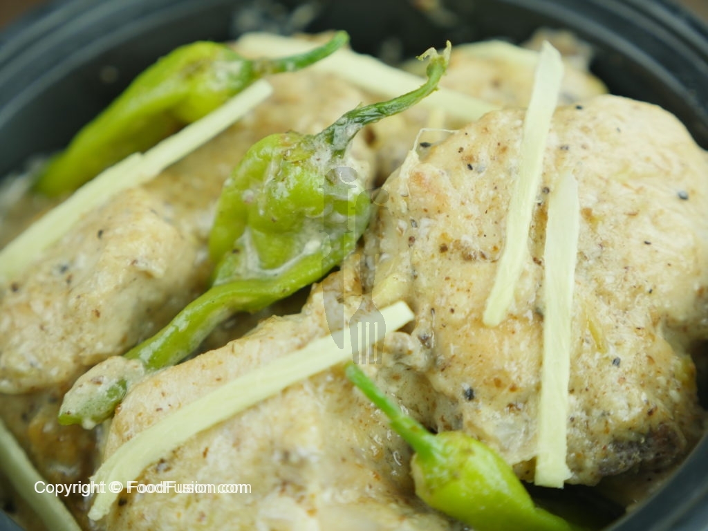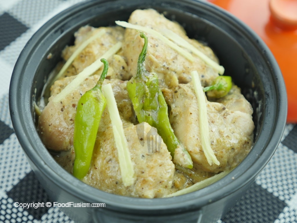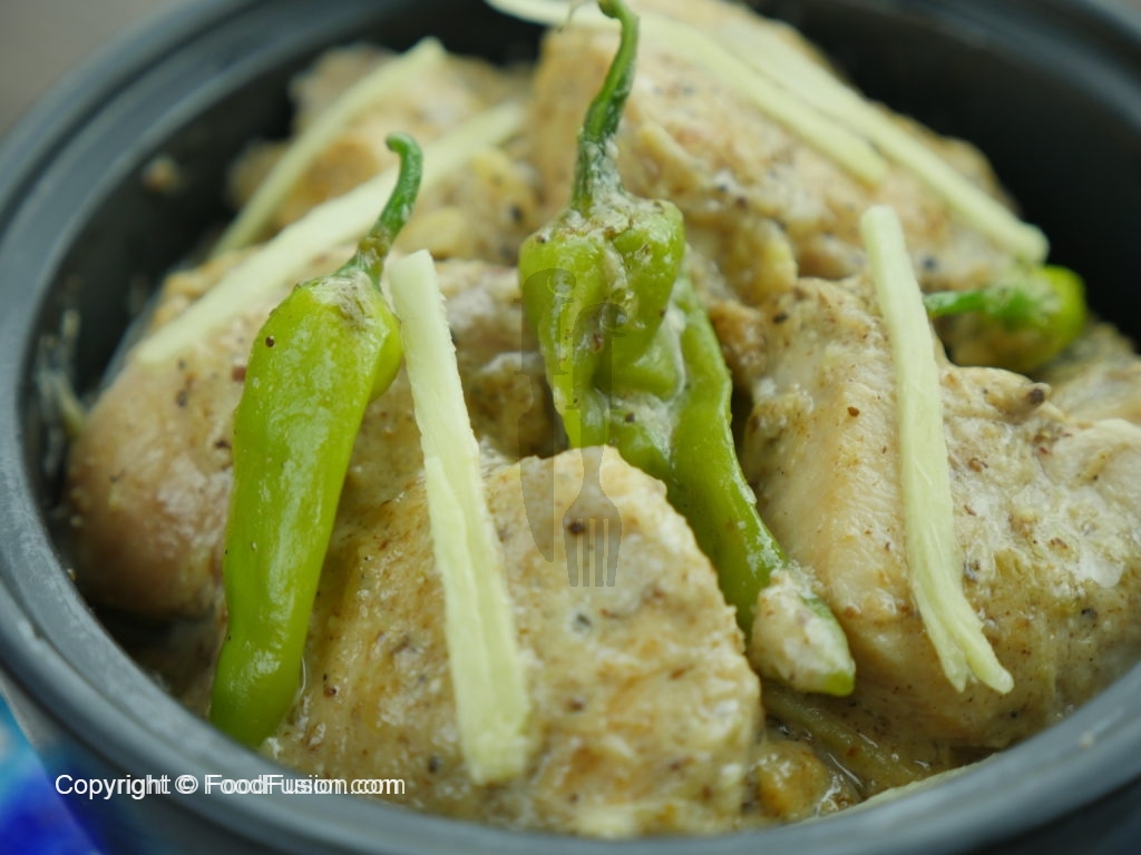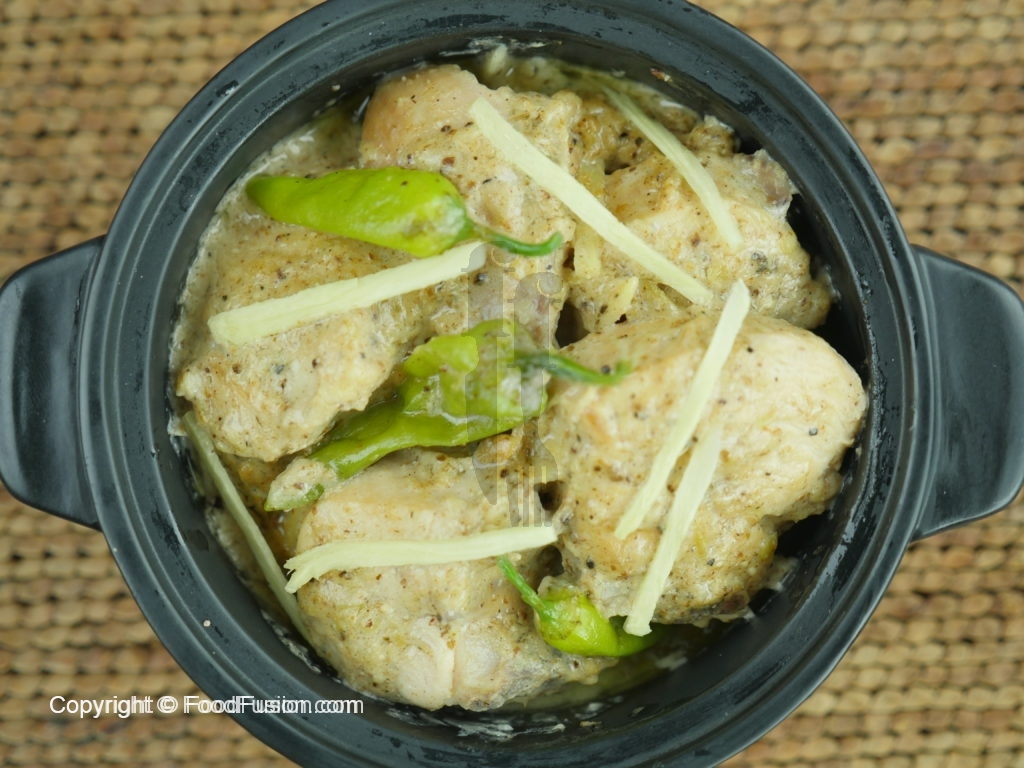 White chicken karahai tayyar hai aur isse roti, naan aur chapatti ke sath khaya ja sakta hai.