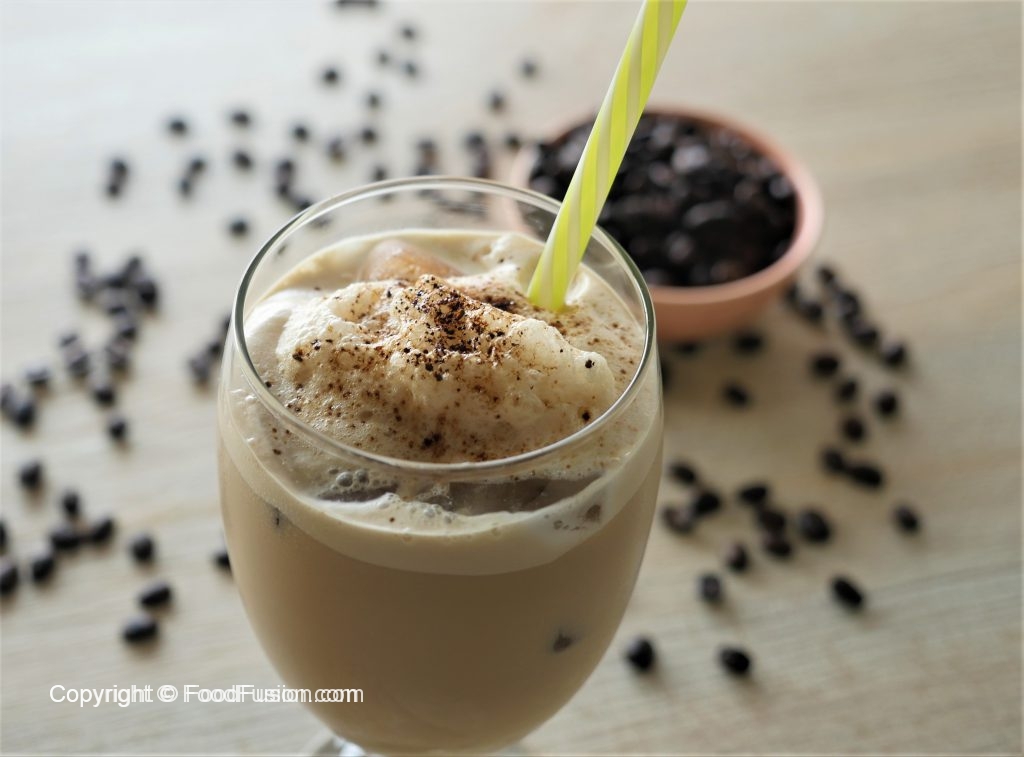 Blender mein cheeni,dissolve coffee,doodh,cream aur ice cubes dal dein aur smooth hunay tak ache tarhan blend ker lein.