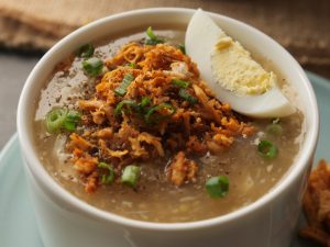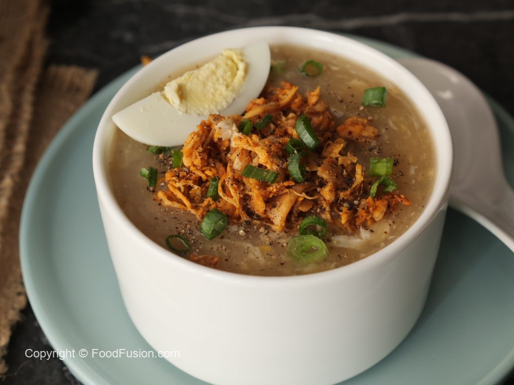-Serving bowl mein soup,tikka chicken,hara pyaz leaves aur kali mirch crushed,boiled anda aur pickled green chillies dal ker serve karein.