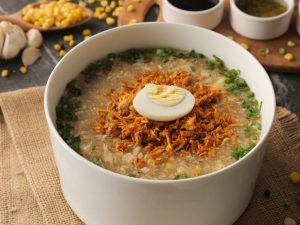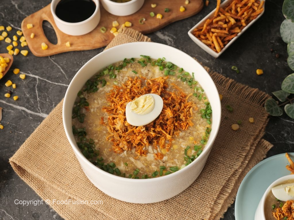 -In prepared chicken stock (approx. 6 Cups),add chopped corn kernels,mix well and bring it to boil.