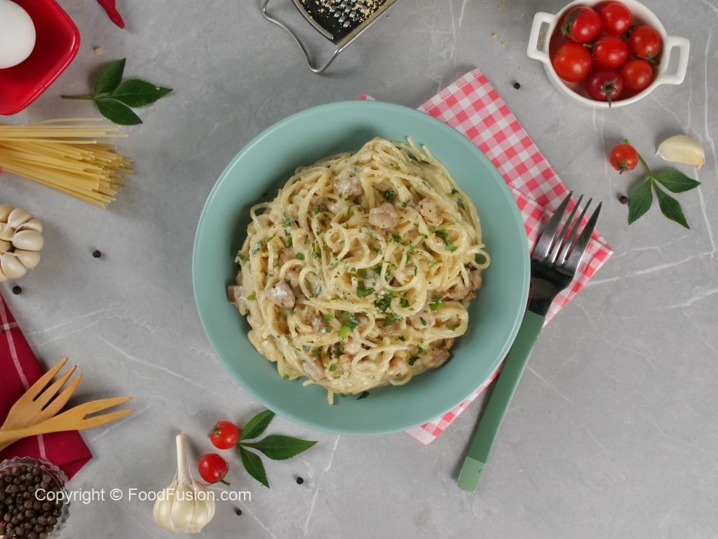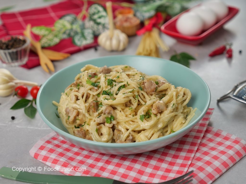Craving a rich pasta dish? Make Carbonara Spaghetti with Olper’s Cream! Creamy, rich, and delicious, this recipe is perfect for special occasions! Try it at home and treat your loved ones! #OlpersDairyCream #GoodnessBarhao#foodfsuion #araywaah #happycookingtoyou