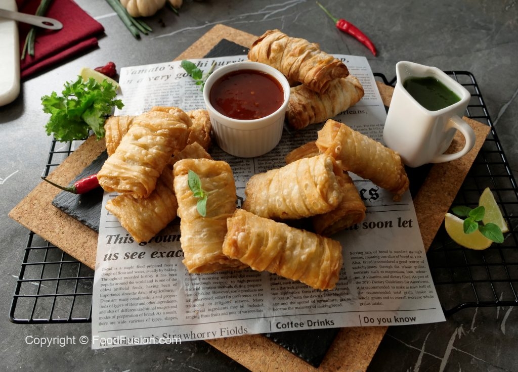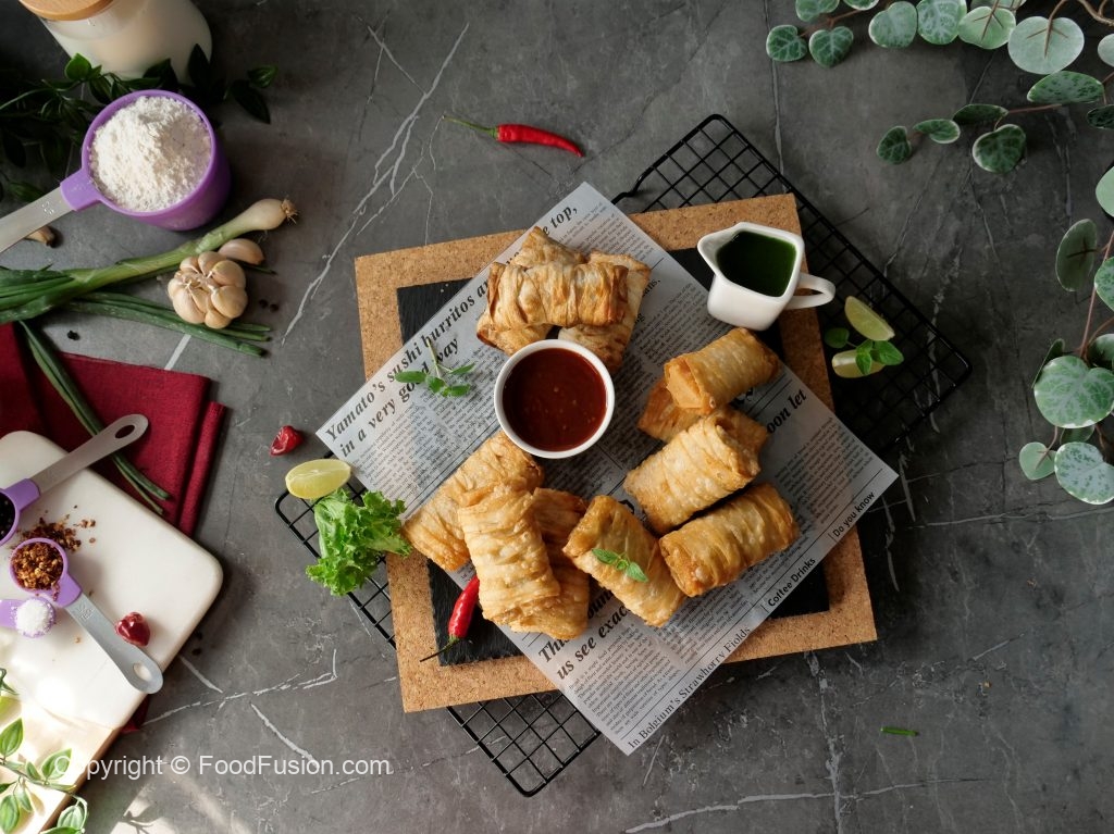 Tayyar creamy chicken filling rakh dein aur flour slurry laga ker sides ko fold ker lein aur sheet ko roll ker ka samosa tayyar ker lein (makes 18-20).
