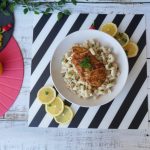 On a serving dish,add pasta,grilled chicken and garnish with fresh parsley & serve!