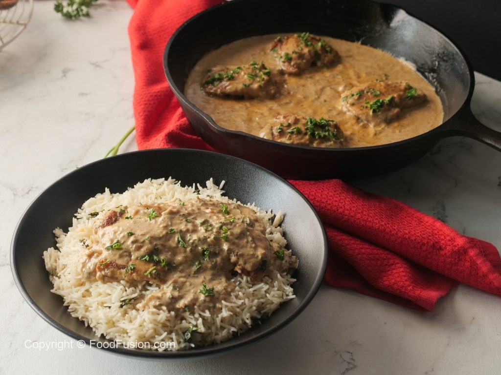 -On a cast iron,add cooking oil & cook marinated chicken on low flame from both sides until tender & golden brown (5-6 minutes each side) & set aside.