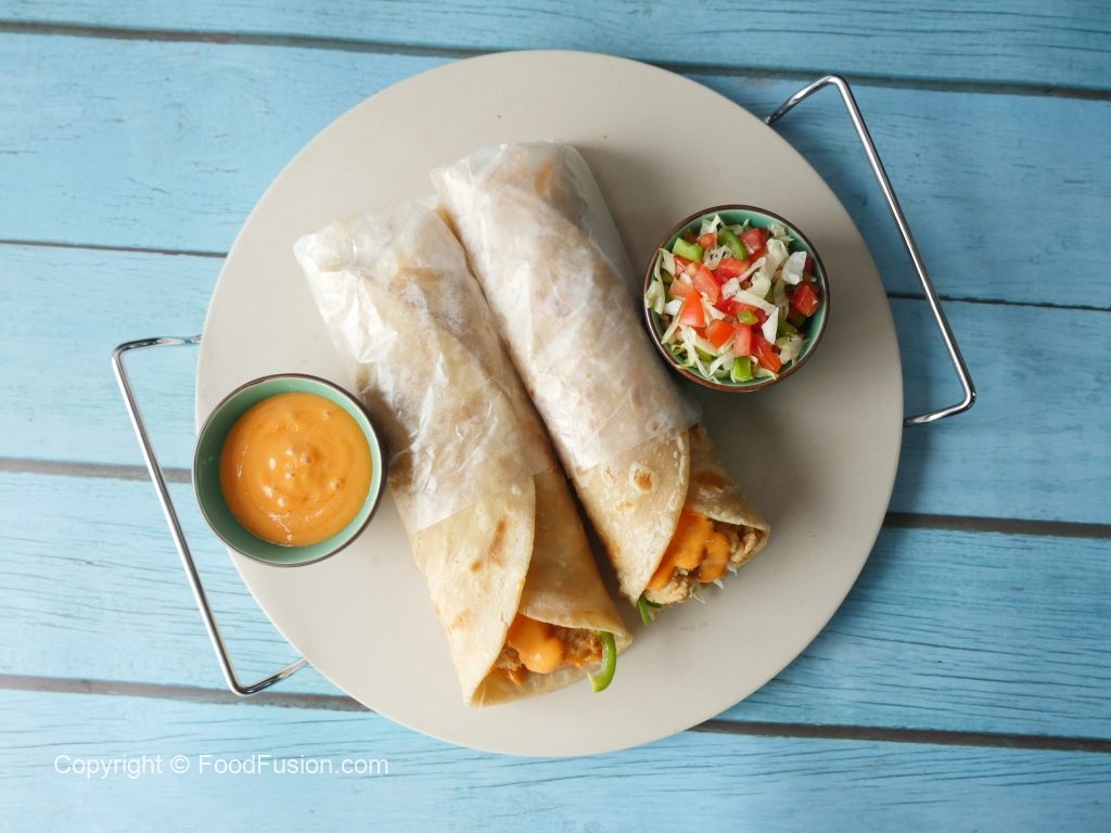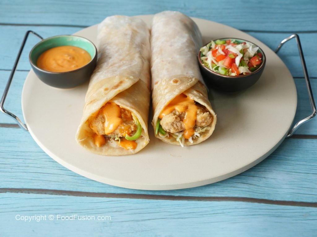 On paratha,add iceberg,crispy fried chicken,capsicum and drizzle prepared fusion spicy sauce and wrap with butter paper & serve (makes 5-6).