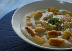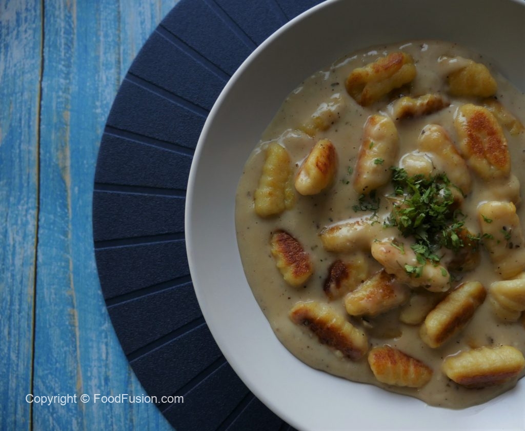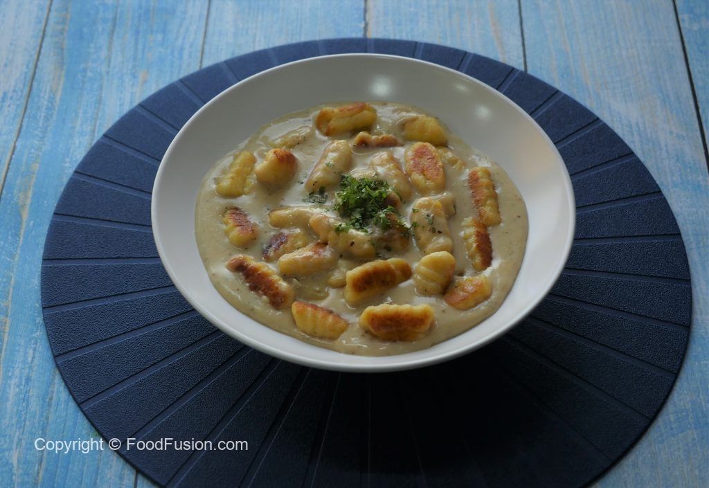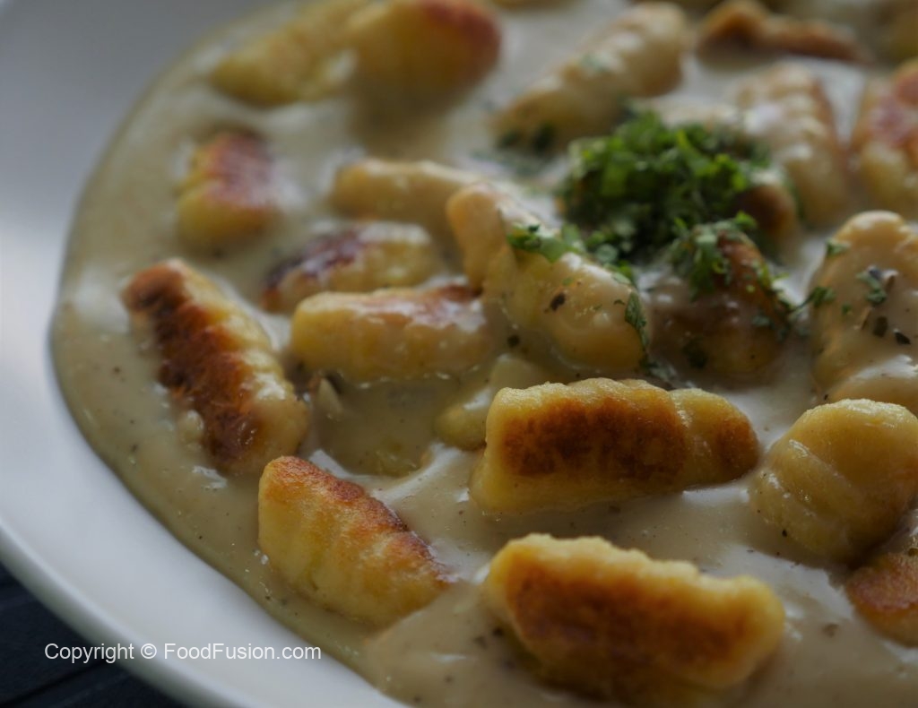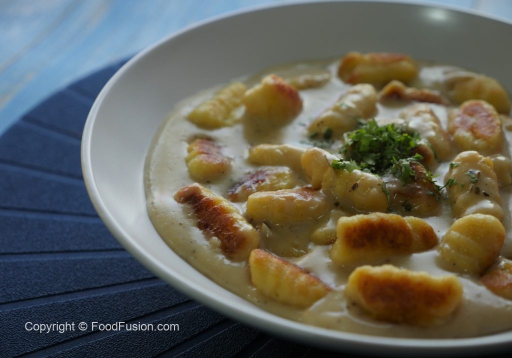 Crispy Gnocchi Pasta with Cheese Sauce