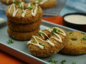 Add breadcrumbs,cornflour,cumin seeds,chicken powder,dried mango powder,red chili powder,garlic powder,black pepper powder,salt,egg,onion,fresh parsley and mix until well combined,cover and let it rest for 10 minutes.