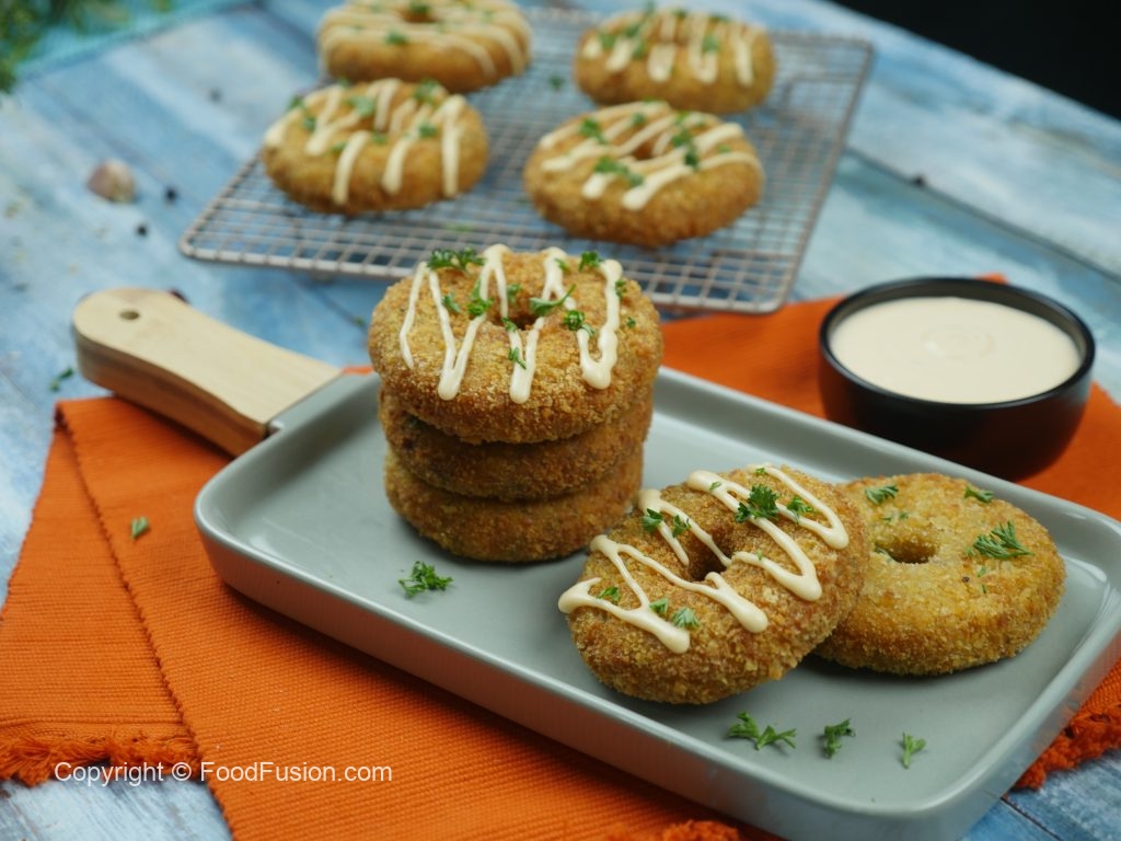 In frying pan,heat cooking oil and fry donuts on medium flame until golden brown.