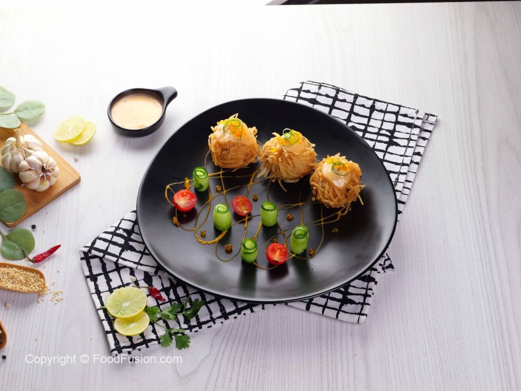 -Ek bowl mein chopped shrimps, cornflour, red chilli crushed, chicken powder, black pepper crushed, white pepper powder, ginger garlic paste, pink salt, sesame oil, soy sauce, fish sauce, spring onion daal kar achi tarah mix kar lein.