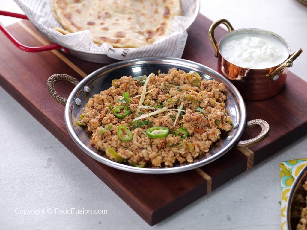 -In a wok,add cooking oil,hand chopped chicken mince & mix well until it changes color & cook on medium flame until it dries up (3-4 minutes).