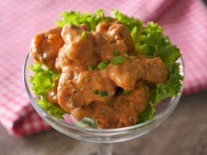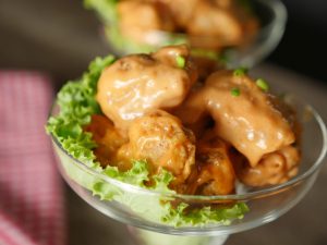 Pat dry chicken boneless cubes with kitchen towel or paper.