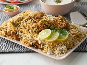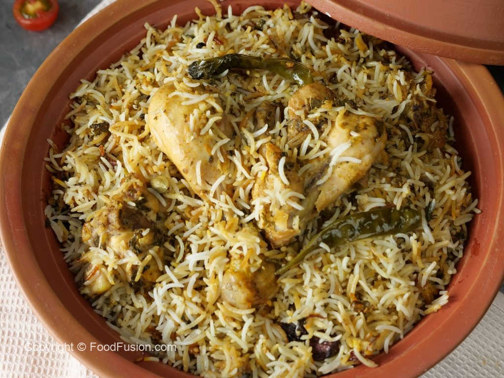-In a bowl,add chicken,yogurt,red chilli powder,black pepper crushed,turmeric powder,cardamom powder,garam masala powder,salt,saffron strands,green chilli,lemon juice,crush fried onion,fresh coriander,mint leaves,ginger garlic along with oil and mix until well combined,cover & marinate for 2-3 hours.