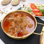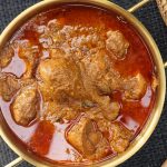 -In a pot,add yogurt,ginger garlic paste,kashmiri red chilli powder,coriander powder,salt,red chilli powder,green cardamom,black peppercorns cloves,fried onion,blended paste,clarified butter,water & mix until well combined.