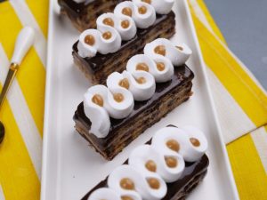 -Ab tayyar chocolate ganache ki layer laga ker few times tap karein aur set ho janay tak refrigerate ker lein (4-5 hours).