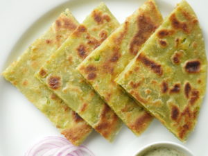 Bowl mein atta,ghee,namak aur blended green mixture dal ker ache tarhan mix ker lein.