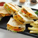 -Toast stuffed tortilla wrap on cast iron griddle from both sides until golden.