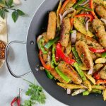 -Add red bell pepper,capsicum,onion,fried potato,fried kababs & give it a good mix.