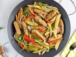 -Red bell pepper,Shimla mirch,pyaz,fried aloo aur fried kababs dal ker ache tarhan mix ker lein.