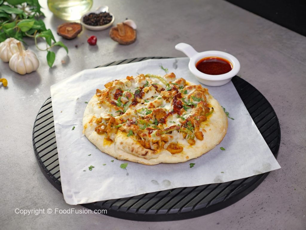 A flatbread layered with harissa chicken and mushrooms — simple yet unforgettable. Every slice brings a perfect balance of flavor. #happycookingtoyou #foodfusion #araywahh