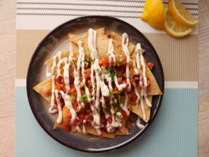 On serving plate,place nachos,prepared salsa,drizzle yogurt sauce,sprinkle fresh parsley & serve!