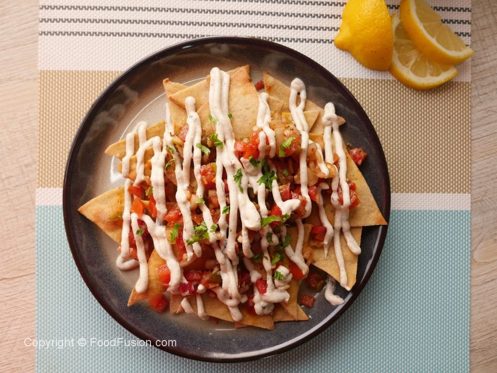 You can eat these healthy nachos completely guilt free. The yogurt sauce just takes this to the next level. Do try them and you will find them addictive. #HappyCookingToYou #HealthyFusion #FoodFusion