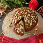 Pour the batter in prepared baking pan,tap on working table for few times & sprinkle mixed dry nuts.