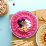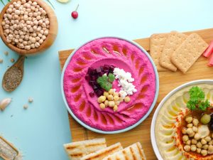 -In a serving dish,add beetroot hummus,beetroot,feta cheese,chickpeas,olive oil & serve with pita bread.