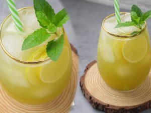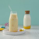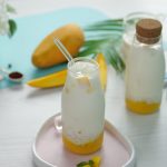 -Glass bottle mein tayyar mango puree (2-3 tbs),boiled sagudana (2 tbs),condensed milk mango chunks,ice cubes aur doodh dal ker stir ker lein & serve karein!