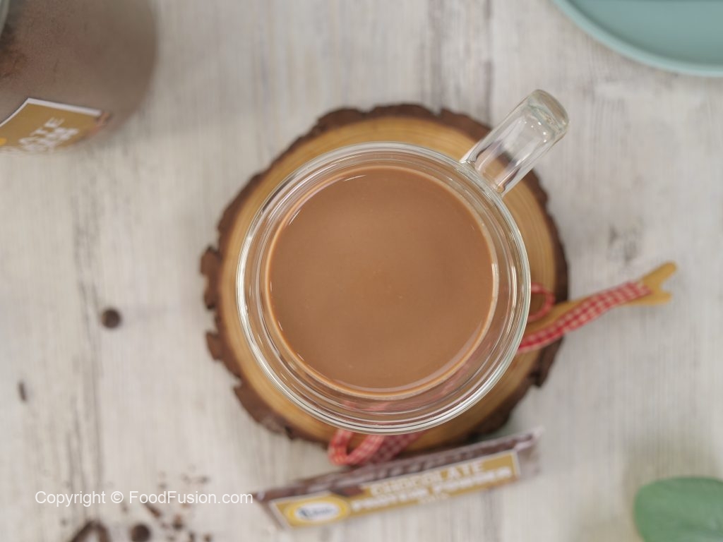 In a jug add lukewarm milk,prepared instant chocolate protein powder mix & mix well.