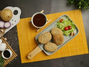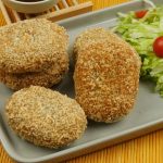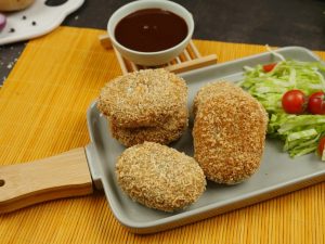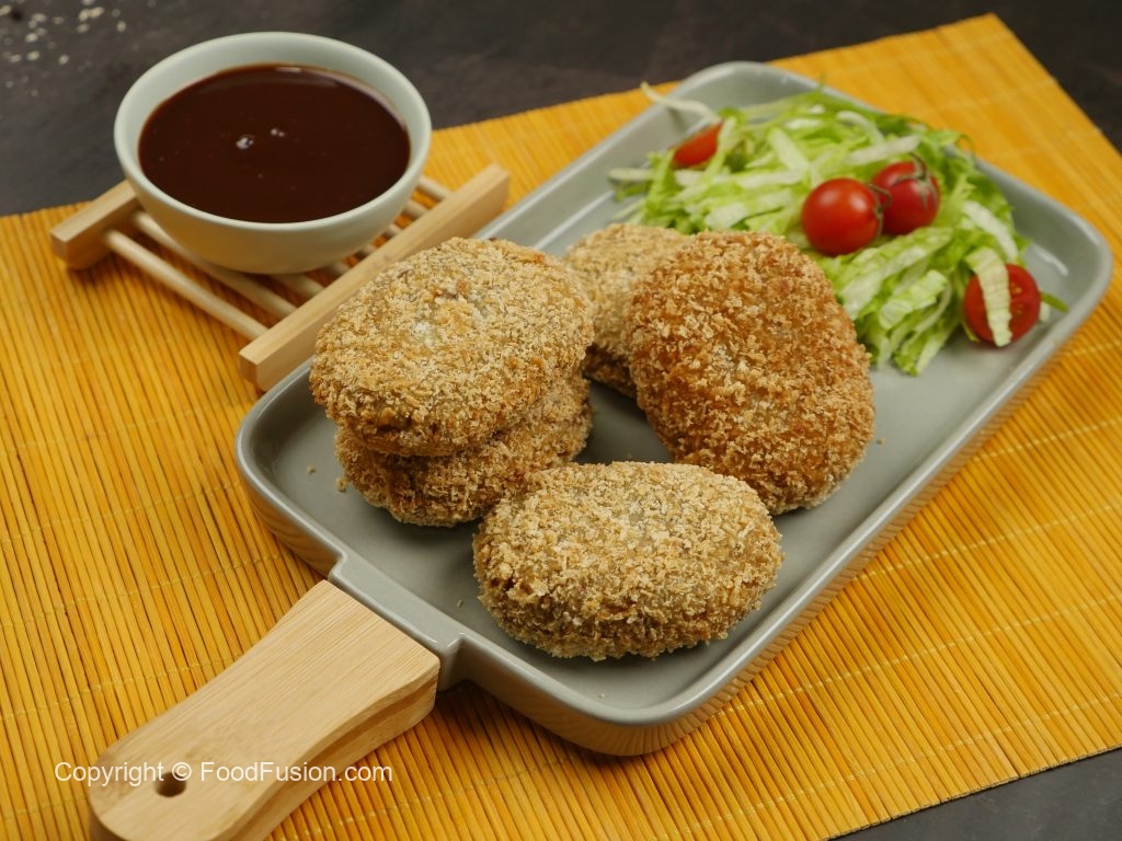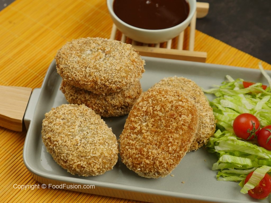 Now coat with all-purpose flour then dip into beaten eggs and coat with breadcrumbs (makes 12-13).