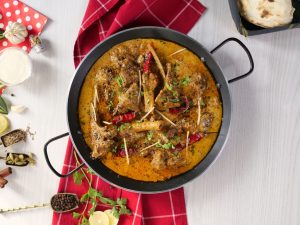 -In a bowl,add mutton chops,mutton mixed boti,pink salt,red chilli powder,garam masala powder, coriander powder,turmeric powder,cumin seeds,ginger garlic paste,lemon juice & mix well,cover & marinate for 1-2 hours.